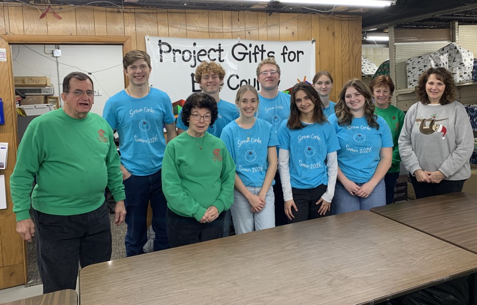 Pictured is the first group of helpers from the Senior Class at Elk County Catholic High School that spent the day Wednesday at Project Gifts for Elk County.